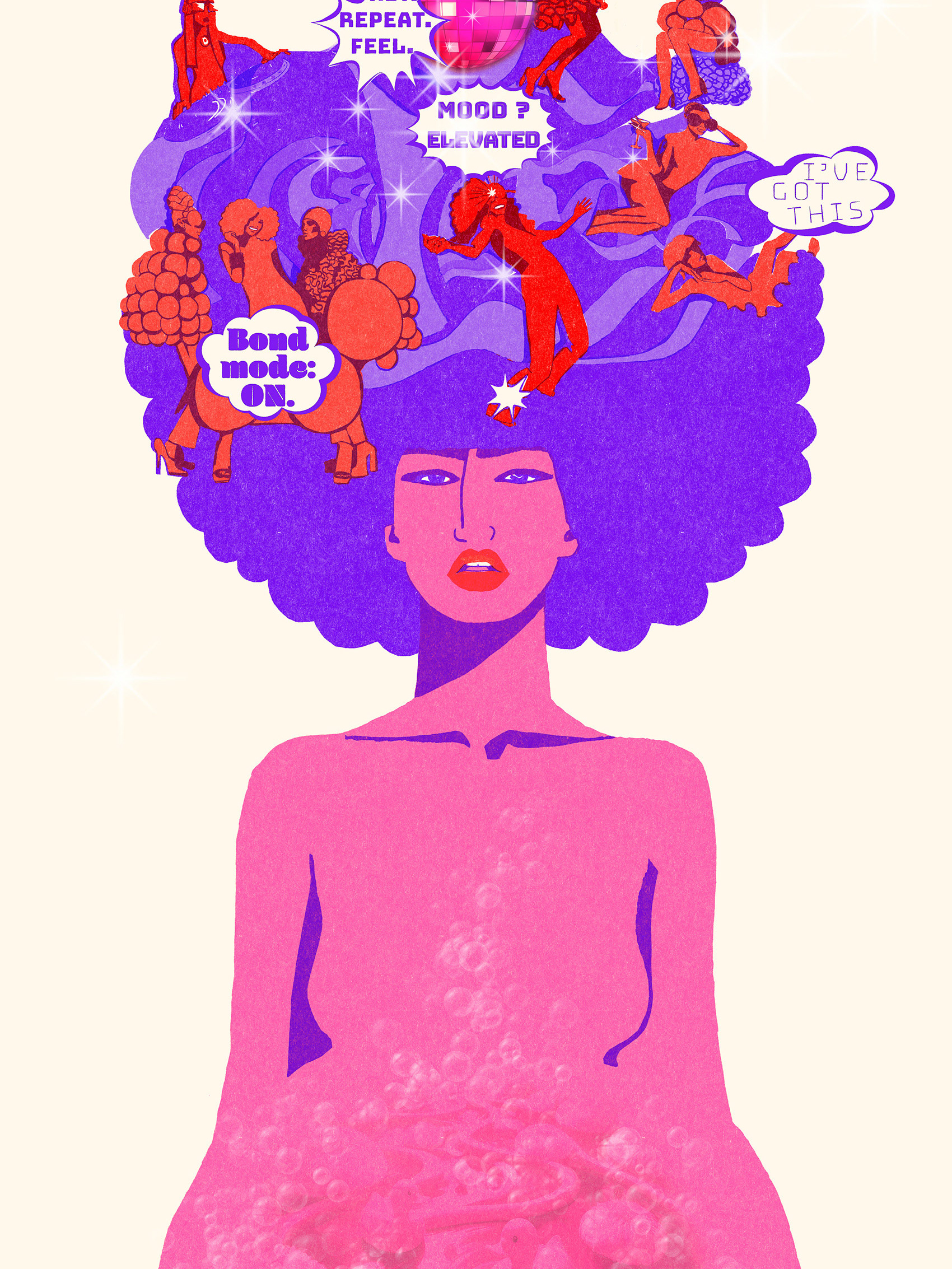 Pregnancy, reimagined as a 70s disco — a dazzling party of inner change.