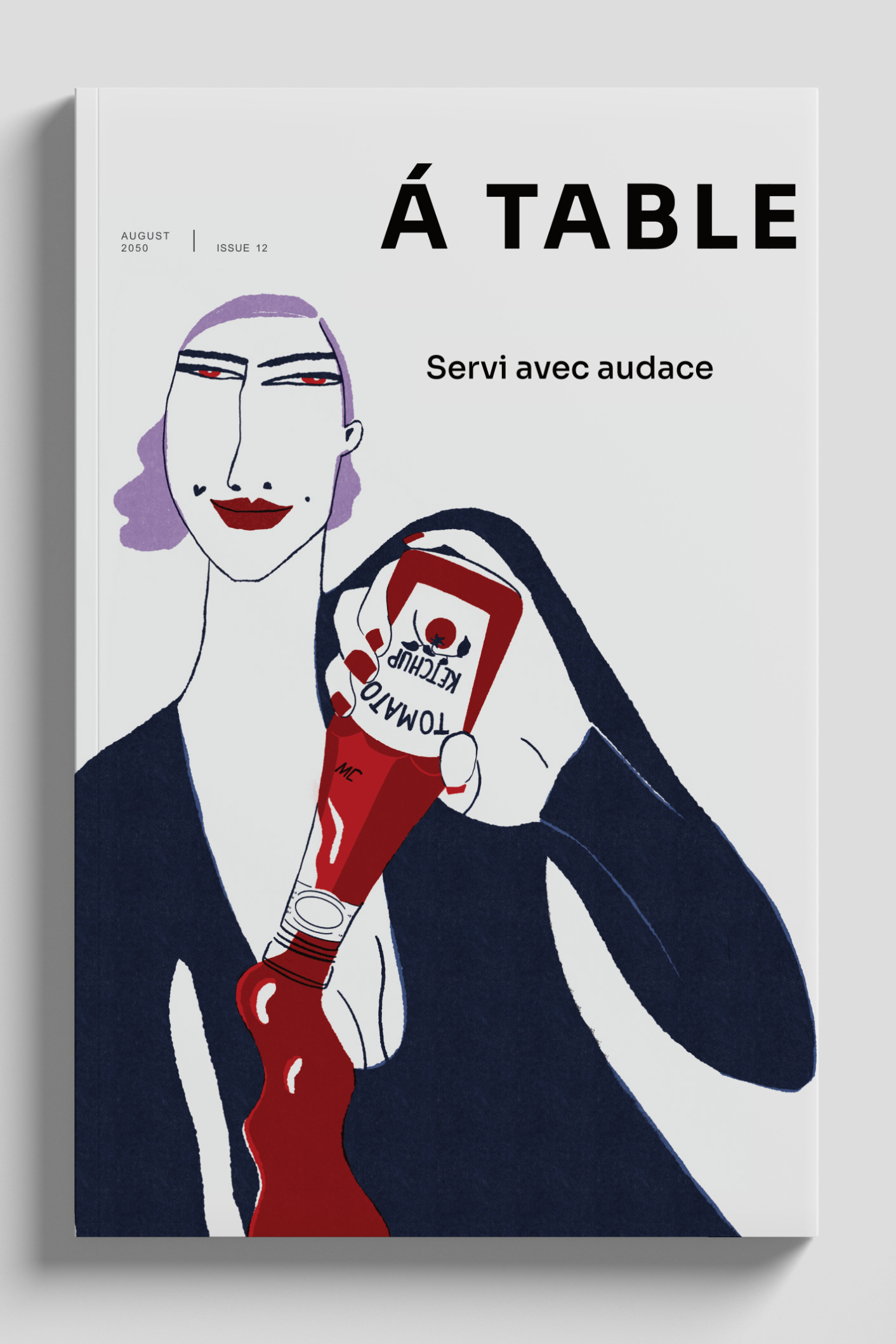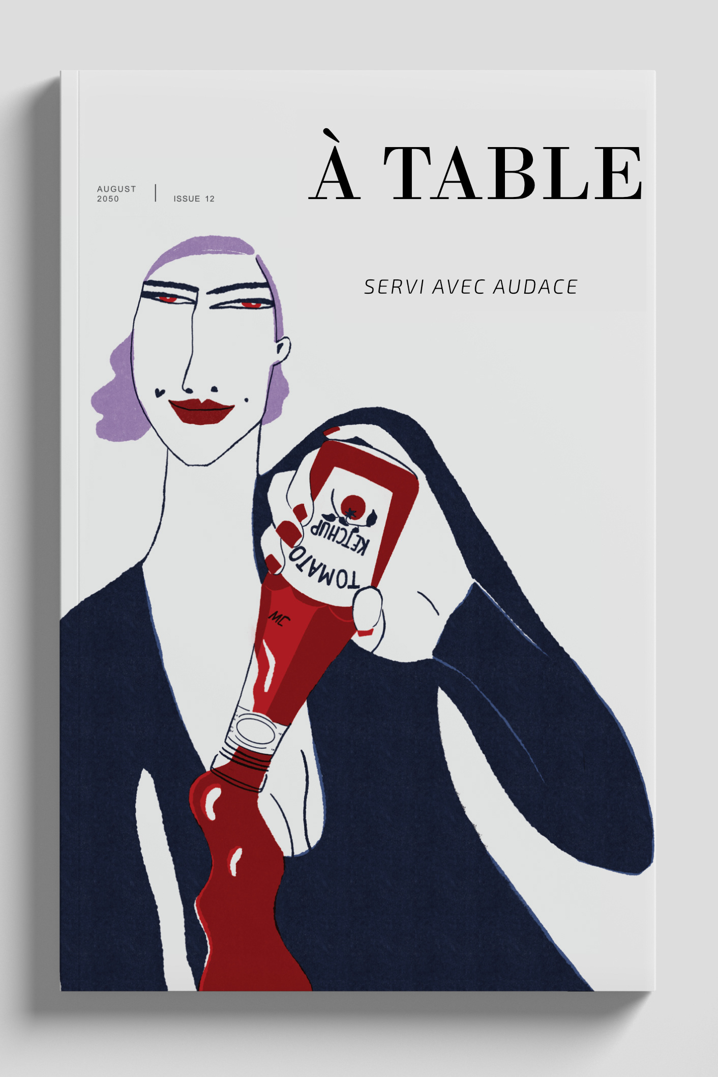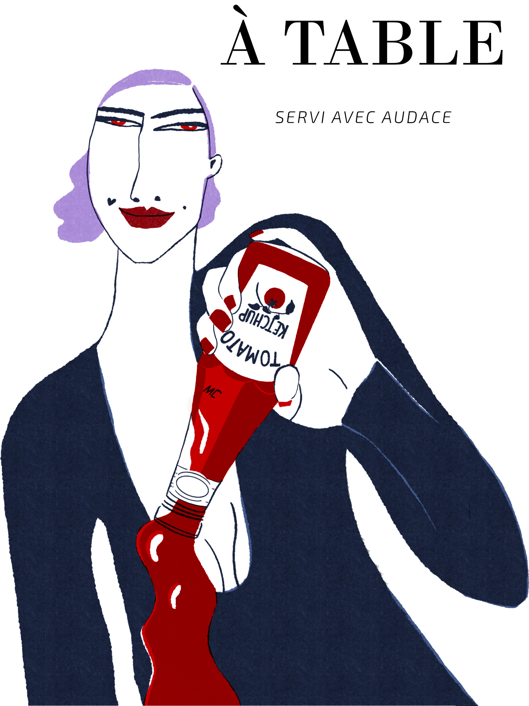From there the drawing is refined into minimal lines and a limited color palette to keep the image bold, graphic, and immediate.