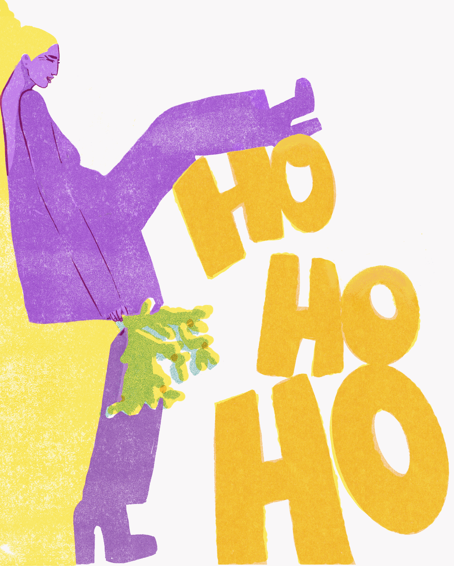 This illustration series, "Festive Attitude: High-Kicking Ho Ho Ho", is a modern, unapologetic take on holiday celebration.