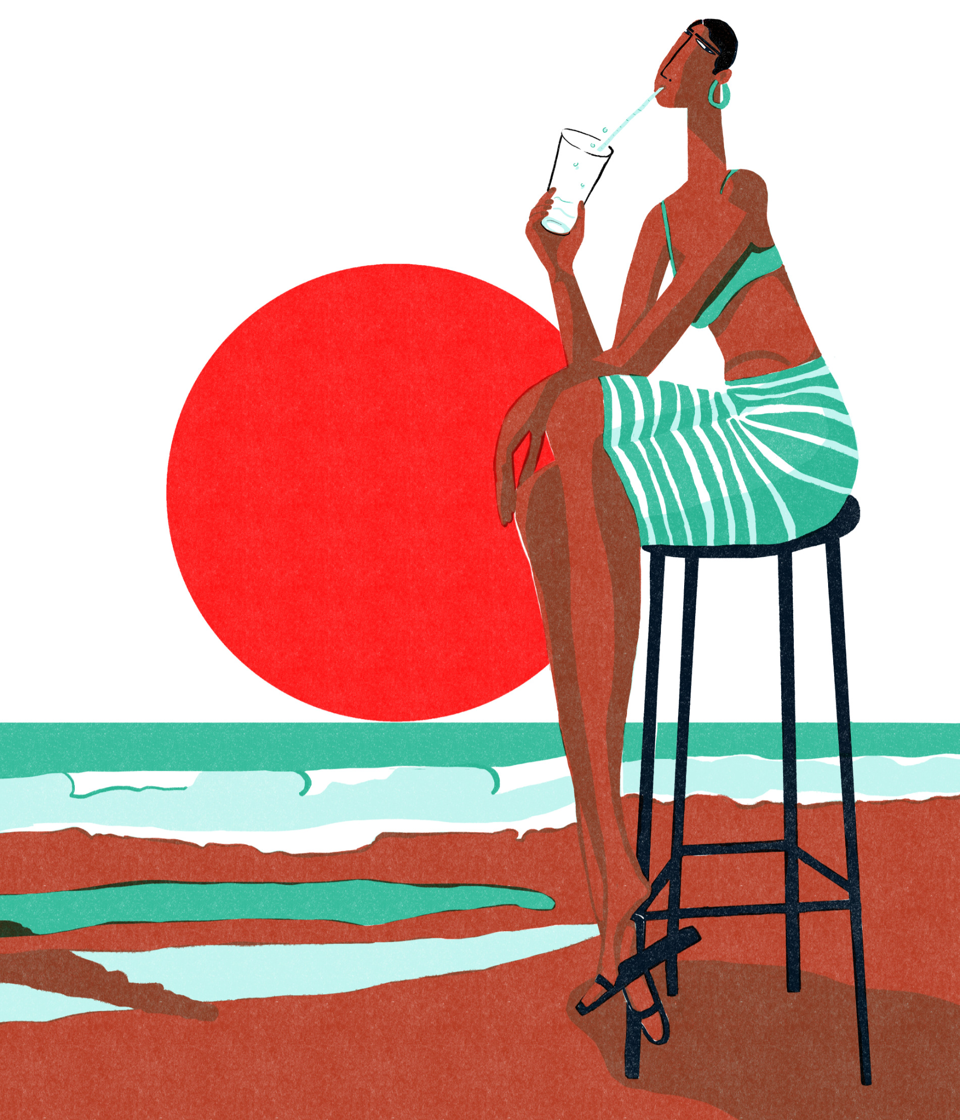 Red sun. Turquoise water. A figure poised in perfect balance. Calm. Precise. Unmistakable.