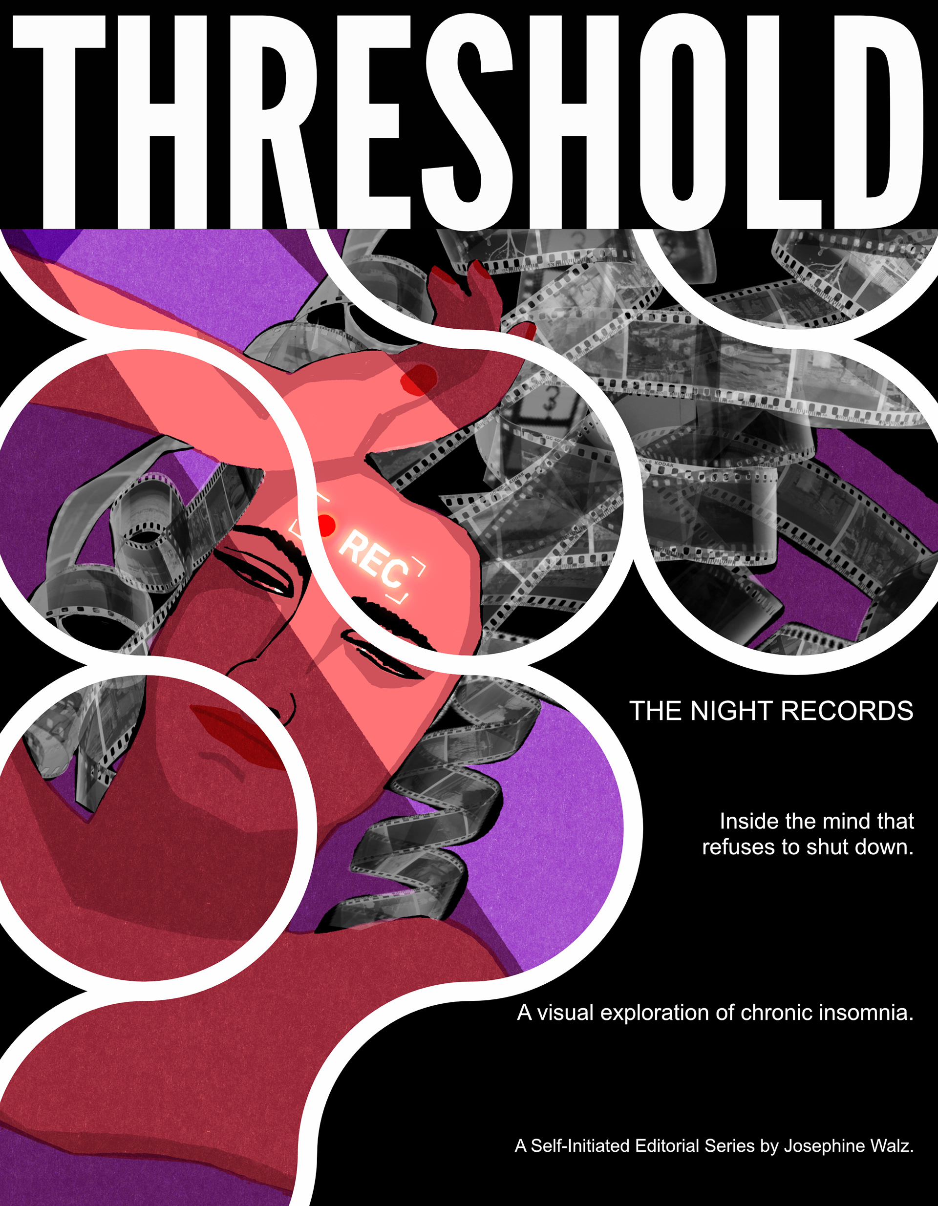 The Night Records: A Visual Deep-Dive into Insomnia "The Night Records" is a conceptual editorial series exploring the mechanics of chronic insomnia. Inspired by current neurological research and ARTE science documentaries ("Unhappy", "Psycho"), the project translates the "over-processing" of the restless brain into a functional visual system. The series features a full-page hero illustration that visualizes the stream of consciousness as physical film strips, recording the night instead of resting in it. To support the narrative, I developed a set of interface-inspired spot illustrations: 404 Sleep Not Found: A metaphor for the biological glitch of inaccessible rest. The Sorting System: Categorizing mental clutter into "Core Memory," "Pending," and "Noise". This project demonstrates my ability to handle complex psychological topics through consistent visual metaphors, ranging from high-impact cover art to detailed informational spots.