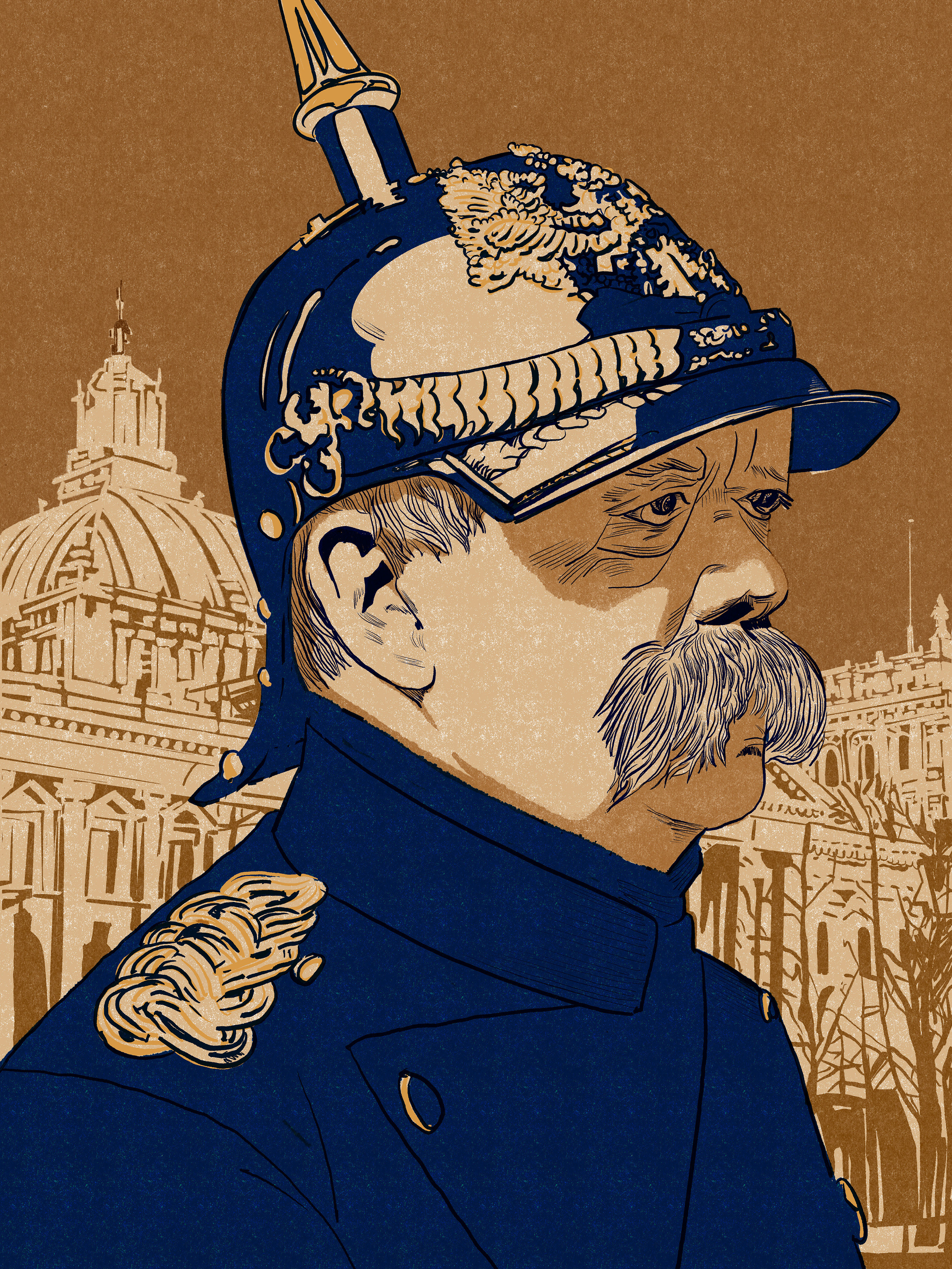 Illustrated portrait of Otto von Bismarck. Created with a contemporary graphic approach, the work reinterprets a historical figure for editorial and publishing contexts.